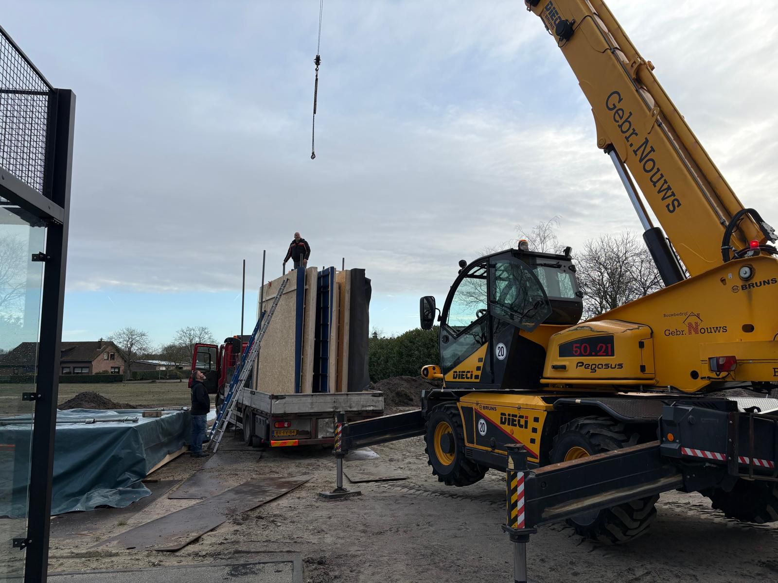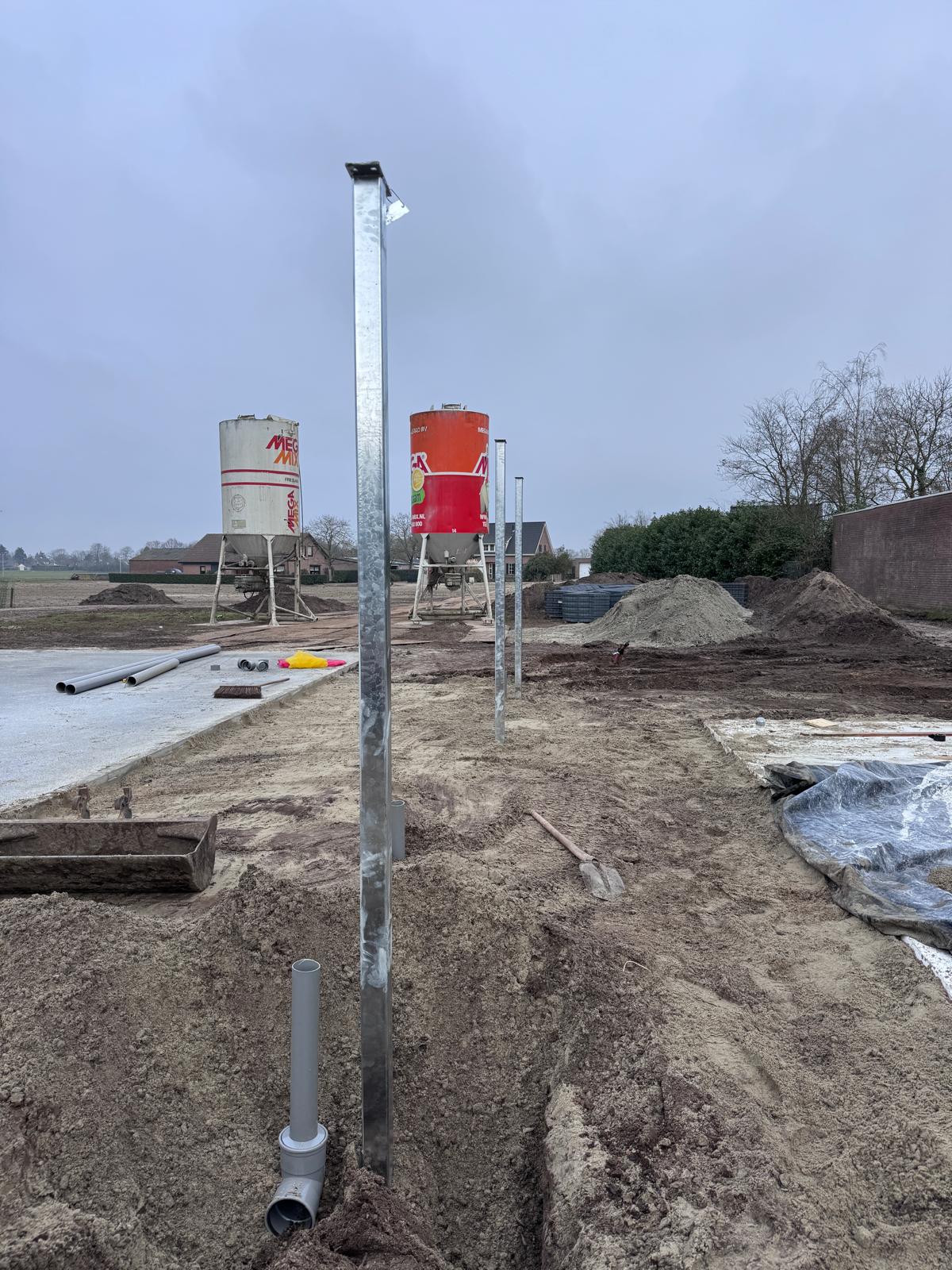 Afgelopen week zijn de wanden voor het onderhoudsgebouw voorbereid bij Gebr. Nouws. Daarnaast is er gestart met het straatwerk.