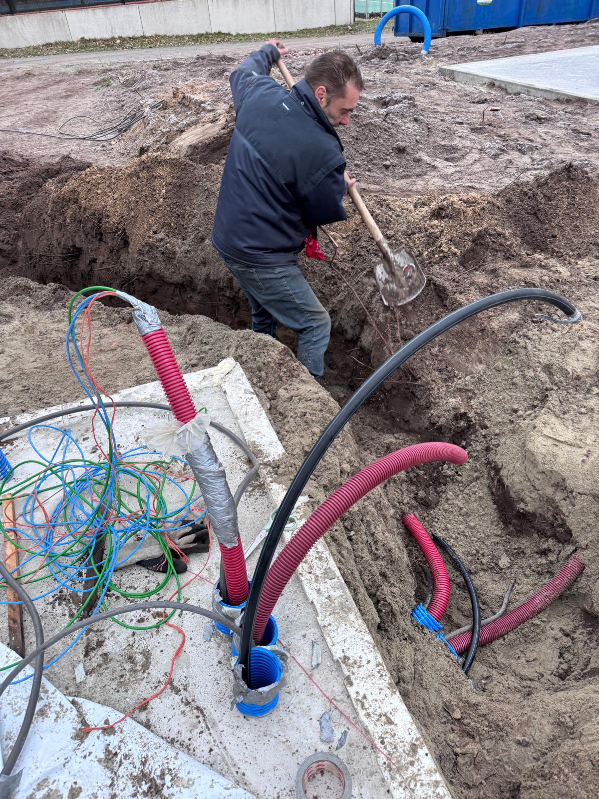 De voorbereidingen voor de derde padelbaan en het nieuwe onderhoudsgebouw zijn gestart. De eerste kabels zijn neergelegd.